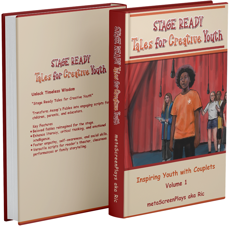 "I’m sharing most of my stories, as couplets and written as stageplays. A couplet is two lines of verse, usually in the same meter and joined by rhyme, that form a unit. I created these skits from Aesop’s Fables. Aesop's Fables is a collection of fables credited to Aesop, a slave and storyteller who lived in ancient Greece between 620 and 564 BCE. These skits may sound familiar, but you have never heard them like this." - Creative Director/Writer of metaScreenPlays; Ricki Connor - a Father/ Grandfather/ Husband/ Brother/ Friend that wants to produce helpful learning and entertainment materials for children and adults. He has written, acted in, directed many community-based stage plays. His education includes a MAT - EducationalTechnology, an MBA; as well as over 30 years in Information Technology, and 6 years in the USMC Reserves. Morals, life lessons, empathy, and diverse images are themes in his creative writings.
